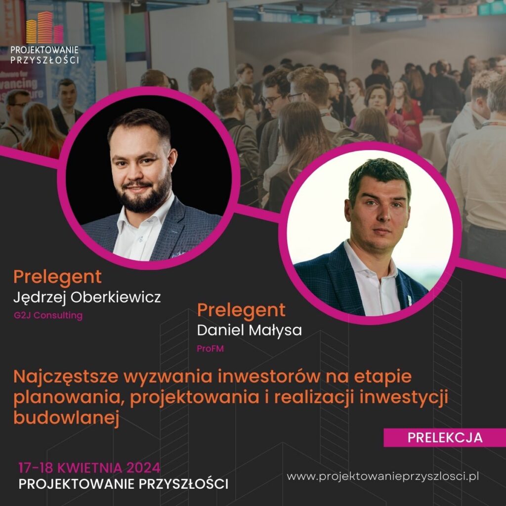 W gronie panelistów, którzy porozmawiają o przyszłości budownictwa będą Jędrzej Oberkiewicz z zarządu naszej firmy i Daniel Małysa z ProFM. Temat ich prelekcji to „Wyzwania inwestorów przy planowaniu, realizowaniu i eksploatacji projektów budowlanych”.